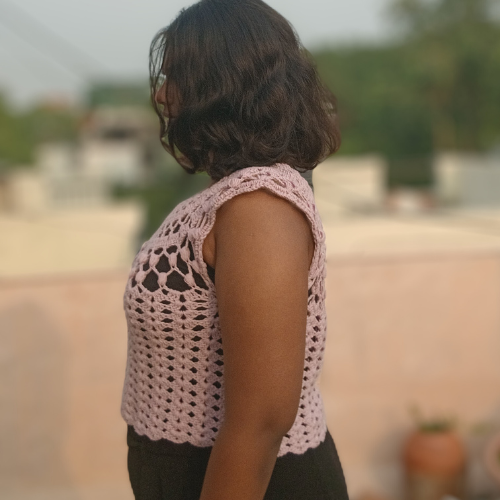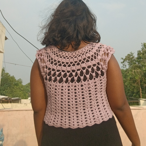 LUNA celebrates the quiet beauty of crochet. Its delicate lilac hue and intricate lacework reveal a story of patience and precision. The airy motifs and scalloped hemline echo feminine grace, making LUNA not just a garment, but a piece of wearable art. Over 10 hours of skilled craftsmanship have gone into every stitch—each one intentional, each one irreplaceable.